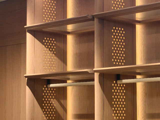 大堂整體木作方案以實(shí)木拼接為關(guān)鍵表達(dá),將雅致奢華的格調(diào)自然融入空間,致力于塑造令人過目不忘的入口場(chǎng)景,讓品牌的溫度與質(zhì)感傳遞給訪客。方案選用紋理細(xì)致的實(shí)木原料,在木料甄選階段便統(tǒng)籌考量其適配性,通過周密的拼接工藝讓天然木紋相互呼應(yīng)、層次分明。拼接處的細(xì)膩處理保留了實(shí)木的原生韻味,同時(shí)賦予空間規(guī)整的秩序感;與此同時(shí),方案規(guī)避了過度裝飾的繁雜,凸顯簡約而有韻味的審美取向。踏入大堂,木作帶來的溫潤觸感與視覺美感撲面而來,柔和木色與空間光影交織,營造出舒緩雅致的氛圍。從接待臺(tái)的整體木作到墻面的局部點(diǎn)綴,連貫的設(shè)計(jì)語言讓入口印象持久,既契合酒店的場(chǎng)景需求,又傳遞出不刻意張揚(yáng)的格調(diào)。如羿大堂整體木作方案不追求浮夸表現(xiàn),而是通過材質(zhì)本身的韻味與工藝的細(xì)致度,讓品牌的獨(dú)特氣質(zhì)自然流露,在訪客心中留下兼具溫度與質(zhì)感的空間記憶,成為酒店整體形象中富有辨識(shí)度的重要部分。湖北室內(nèi)木飾面定制怎么樣民宿木作定制貼合裝修風(fēng)格,質(zhì)感統(tǒng)一,滿足游客居住體驗(yàn)與審美需求。